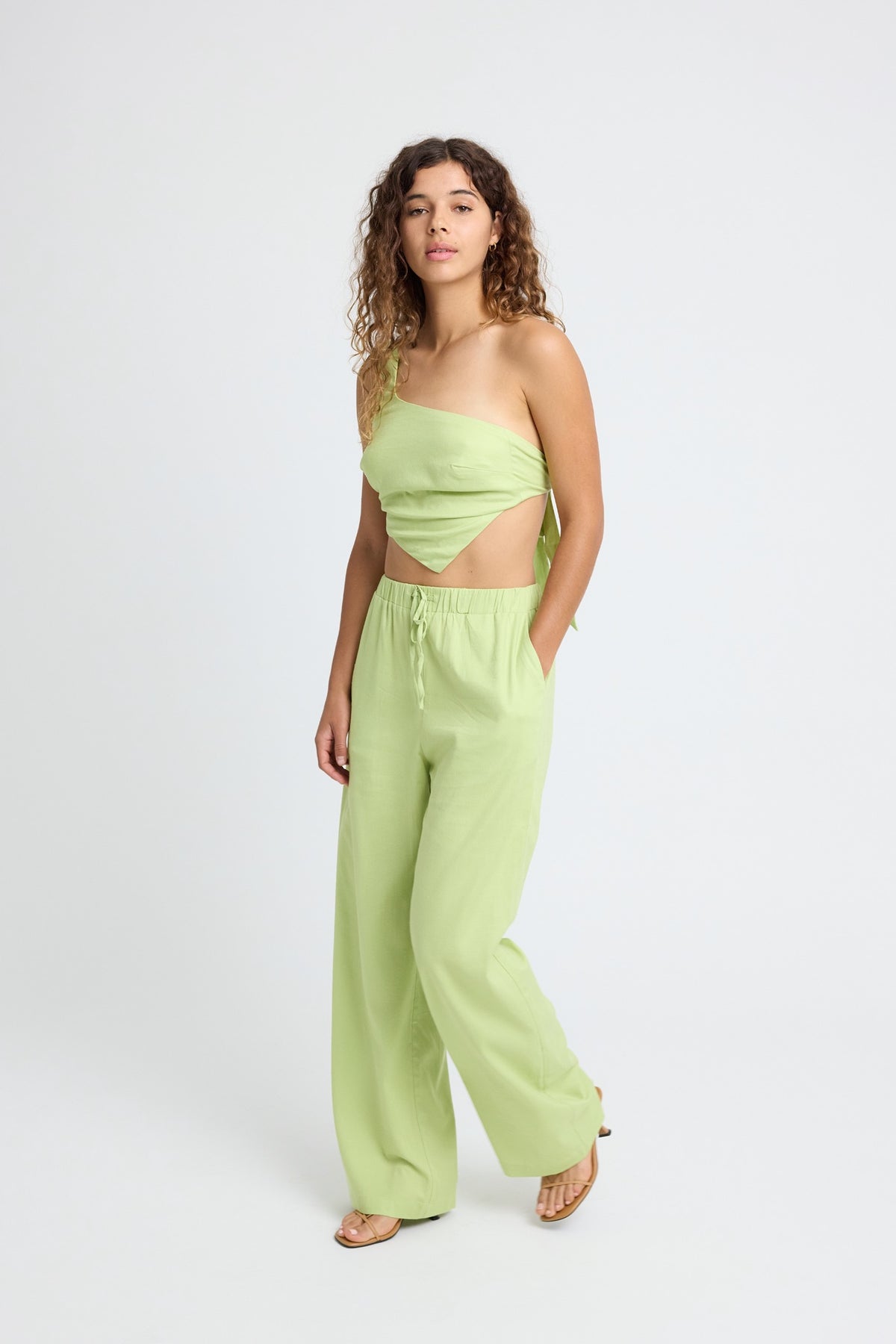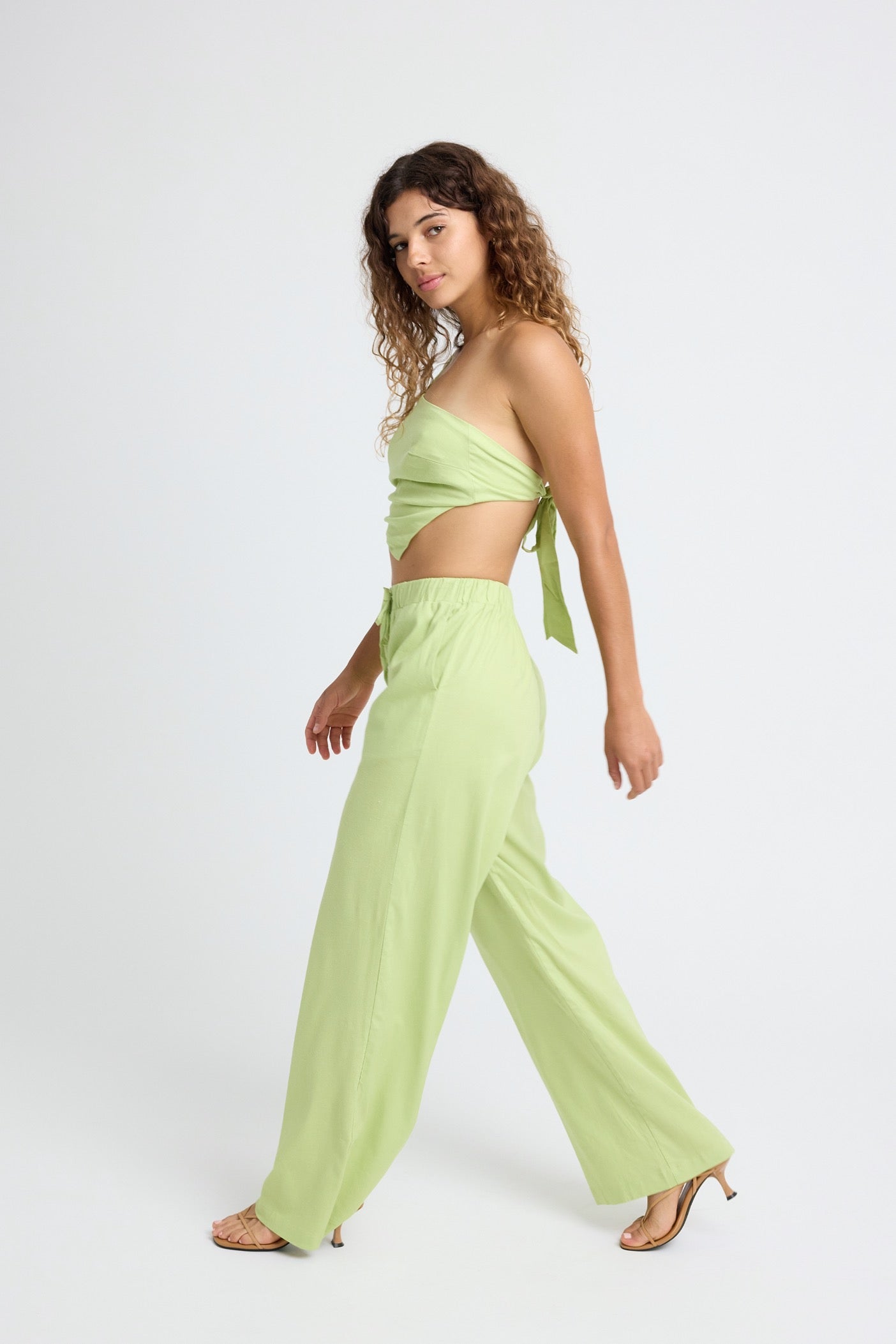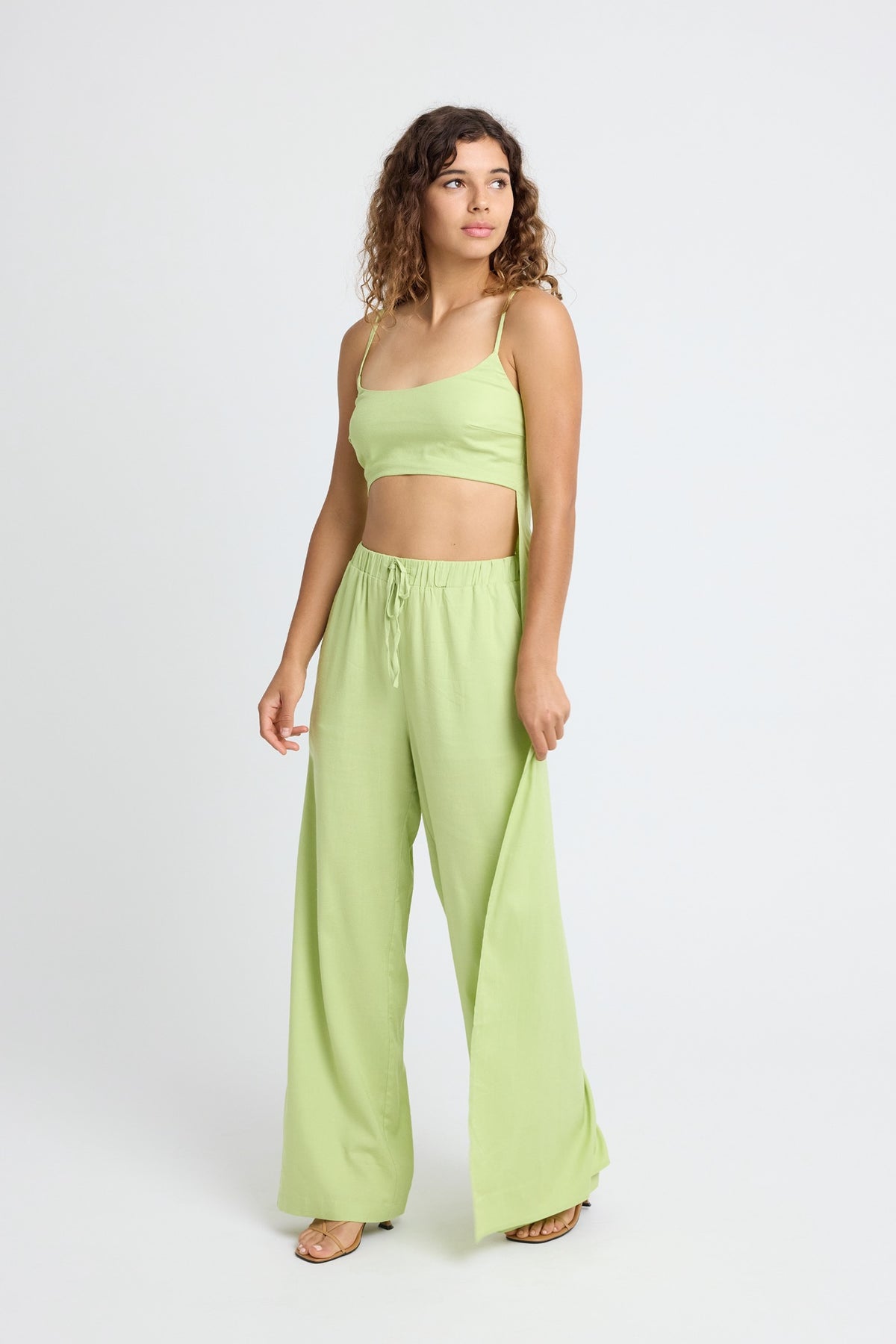 Briar Linen Wide Leg Pant - Lime
