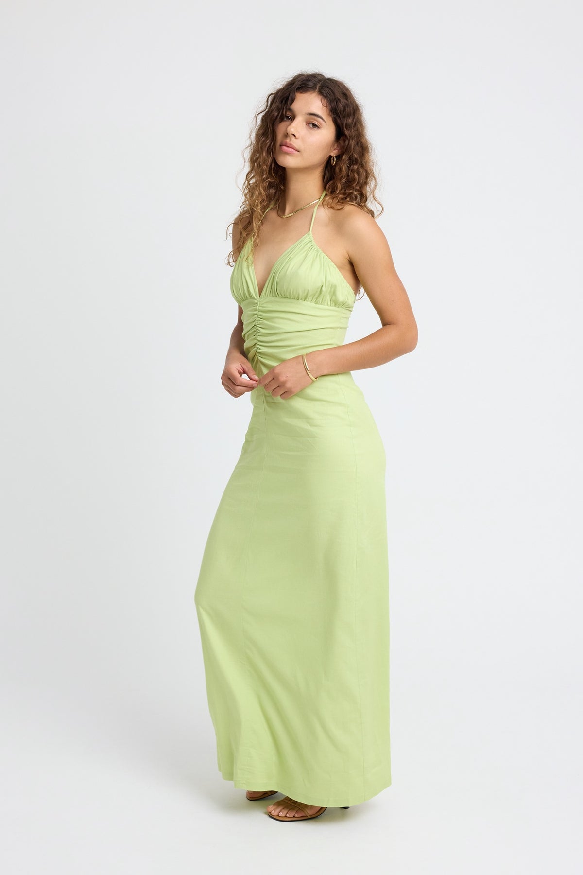 Dani Linen Halter Dress - Lime