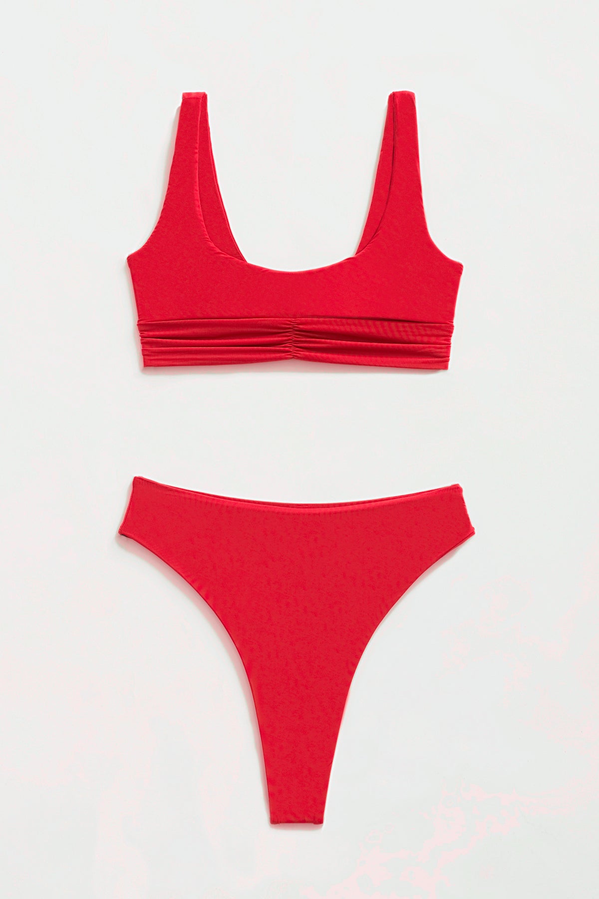 Modest in the front, minimal in the back – the Kai Bottom is the perfect high-waisted, thong bikini. Crafted from our butter-soft nylon + spandex fabric, this hip-hugging silhouette smooths stomachs and shows off your best asset.